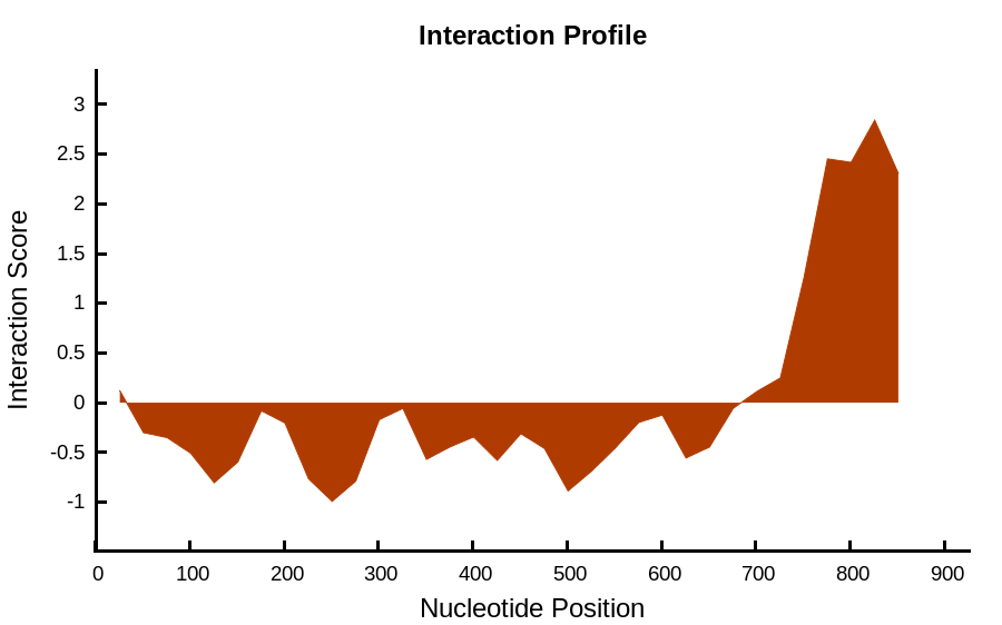 Please remember that the RNA interaction profile is an average over protein fragments, while the interaction matrix shows individual protein and RNA fragments.