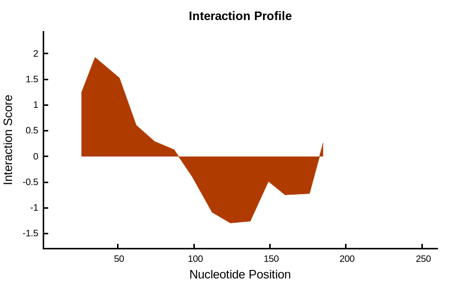Please remember that the RNA interaction profile is an average over protein fragments, while the interaction matrix shows individual protein and RNA fragments.